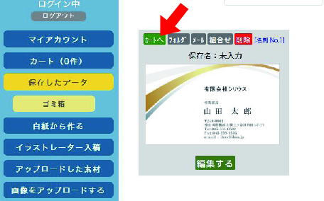 複数の種類の名刺を注文するには、それぞれの「カートへ」を順番にクリックし、最後に「カートを確認する」をクリックします