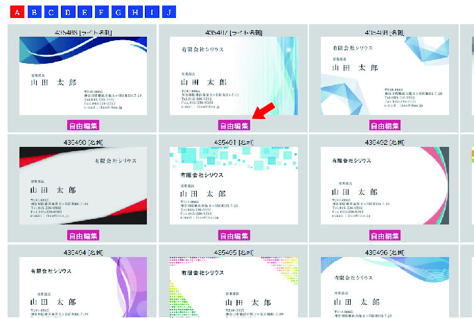ご希望に一番近いデザインの下の「自由編集」をクリックし編集画面を開きます
